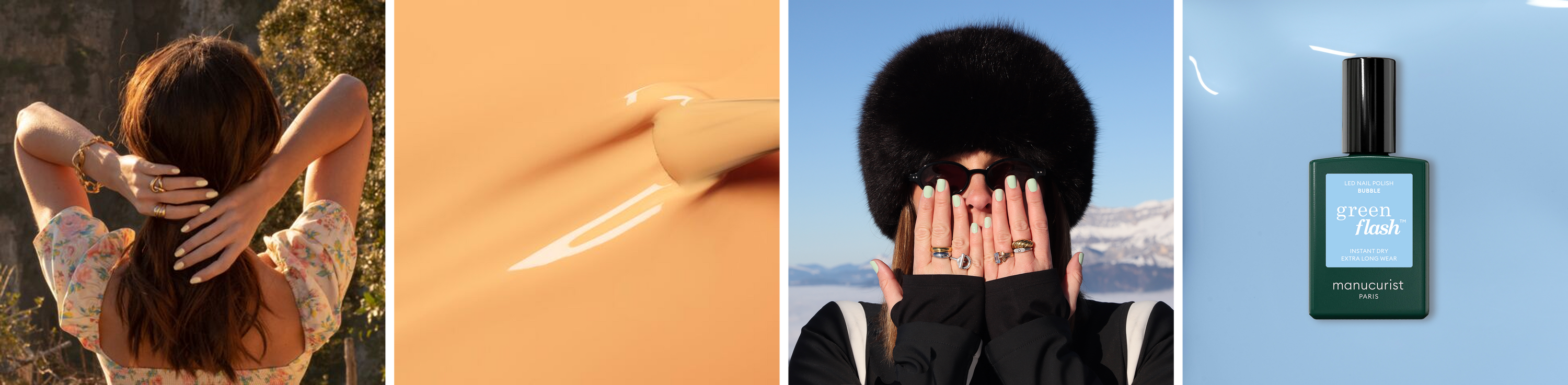For pastel lovers: Trio Sets and Rainbow 5-Colour Sets let you mix and match from a trendy selection of shades, available in both Green™ classic polish and Green Flash™ semi-permanent polish. Choose multiple pastel hues for a manicure that evolves with the seasons. With these sets, anything is possible… Enjoy!