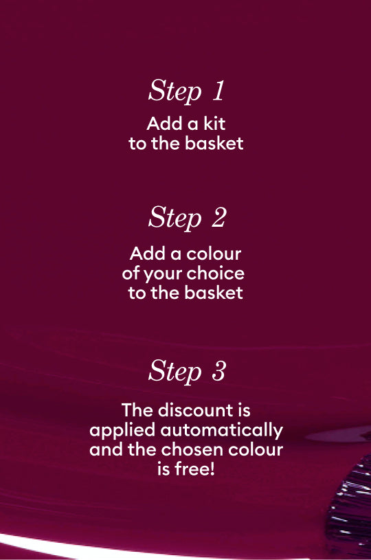 3 colours + Nail prep + 1 FREE pouch+ FREE COLOUR -